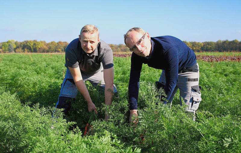 Aujourd’hui, la ferme repose sur un travail collectif, entre la famille et une équipe de salariés engagés. Nous cultivons une large gamme de légumes toute l’année, selon les cahiers des charges Bio et Demeter. L’accès à une alimentation saine pour tous nous tient à cœur. C’est motivant de savoir que grâce à Solibio, une partie de nos produits arrive chaque jour dans les assiettes de chacun, à travers la restauration collective.